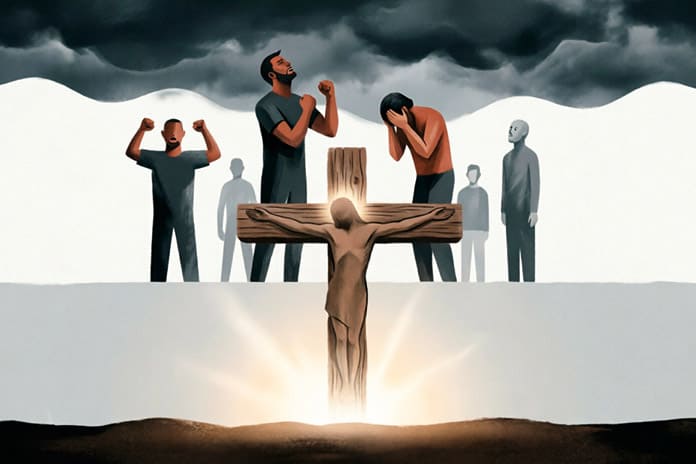 Ilustración sobre el sufrimiento y la cruz, que evoca la presencia de Dios que sostiene desde abajo el dolor humano según la teología de Balthasar